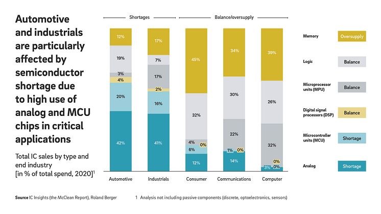 "We are still seeing a structural shortage of analog semiconductors and microcontrollers that will last several years. Lower demand for computers and consumer electronics does provide some relief for the semiconductor industry. But it will make capacity and inventory planning even more difficult for both, the manufacturers of microchips and the companies that use them," says Falk Meissner, Partner at Roland Berger. "We have the unusual situation of seeing shortages, overcapacities and oversupply of semiconductors all at the same time."