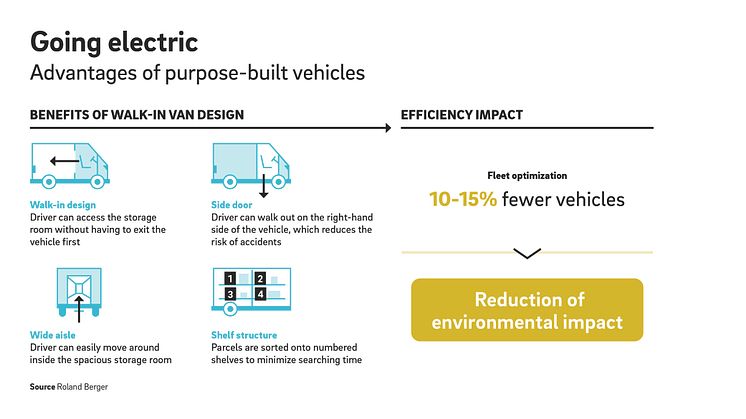 - Purpose-built vehicles would allow delivery fleets to reduce by 10 to 15 percent and thereby lessen their environmental impact